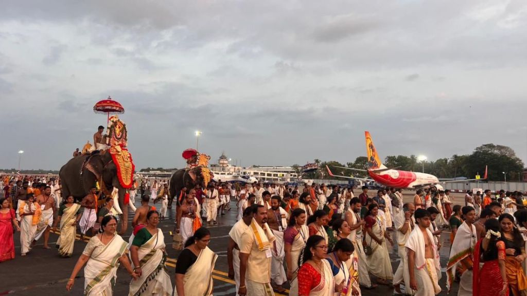 यह अवसर श्री पद्मनाभस्वामी मंदिर के वार्षिक पैनकुनी अरट्टू उत्सव का था. यह उत्सव केरल की धार्मिक और शाही परंपराओं से जुड़ा हुआ है. इस दौरान भगवान पद्मनाभस्वामी, नरसिंह मूर्ति और कृष्ण स्वामी की मूर्तियों को मंदिर से लगभग 6 किलोमीटर दूर शांगुमुघम बीच तक शोभायात्रा में ले जाया गया. इस यात्रा का खास हिस्सा यह था कि यह एयरपोर्ट के रनवे से होकर गुजरती है. यह परंपरा पुराने त्रावणकोर राजघराने के समय से चली आ रही है, जिसने 1932 में इस एयरपोर्ट का निर्माण कराया था.