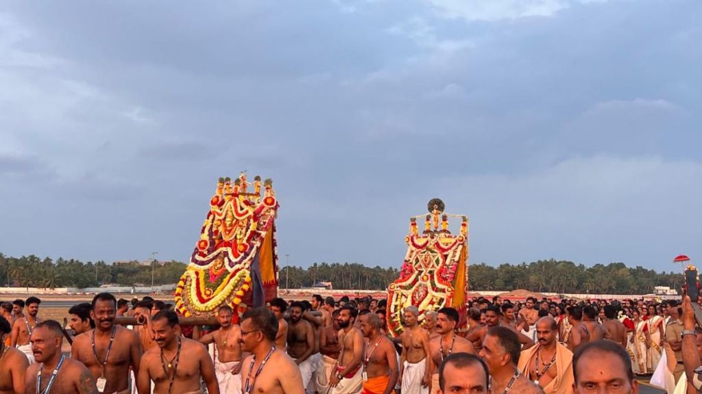 हाथियों, पारंपरिक वाद्य यंत्रों और शाही परिवार के सदस्यों के साथ यह यात्रा आगे बढ़ी. समुद्र तट पर मूर्तियों का पवित्र स्नान कराया गया और शाम को मशालों की रोशनी में वापसी यात्रा हुई. इस दौरान एयरपोर्ट पर उड़ानें अस्थायी रूप से बंद रहीं. बाद में रनवे की जांच और सफाई के बाद ही उड़ान सेवाएं फिर से शुरू की गईं. एयरपोर्ट का संचालन अडानी एयरपोर्ट होल्डिंग्स लिमिटेड द्वारा किया जाता है, जिसने मंदिर प्रशासन और स्थानीय अधिकारियों के साथ मिलकर इस आयोजन को सुरक्षित तरीके से पूरा कराया.