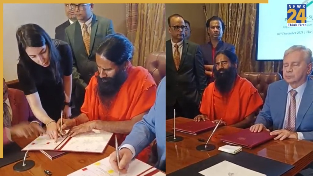 рджрд┐рд▓реНрд▓реА рдореЗрдВ рдЖрдЬ рдПрдХ рдорд╣рддреНрд╡рдкреВрд░реНрдг рд╕рдордЭреМрддрд╛ рд╣реБрдЖ, рдЬреЛ рдХрд┐ рдкрддрдВрдЬрд▓рд┐ рд╕рдореВрд╣ рдФрд░ рд░реВрд╕ рдХреА рдореЙрд╕реНрдХреЛ рд╕рд░рдХрд╛рд░ рдХреЗ рдмреАрдЪ рдерд╛. рдпреЛрдЧ рдЧреБрд░реБ рдмрд╛рдмрд╛ рд░рд╛рдорджреЗрд╡ рдиреЗ рдЗрд╕ рд╕рдордЭреМрддрд╛ рдЬреНрдЮрд╛рдкрди рдкрд░ рд╣рд╕реНрддрд╛рдХреНрд╖рд░ рдХрд┐рдП. рдЗрд╕ рд╕рдордЭреМрддрд╛ рдЬреНрдЮрд╛рдкрди рдореЗрдВ рднрд╛рд░рдд рдФрд░ рд░реВрд╕ рдХреЗ рд╡реНрдпрд╛рдкрд╛рд░ рдкрд░рд┐рд╖рдж рдХреЗ рдЕрдзреНрдпрдХреНрд╖ рддрдерд╛ рдореЙрд╕реНрдХреЛ, рд░реВрд╕ рдХреЗ рд╡рд╛рдгрд┐рдЬреНрдп рдордВрддреНрд░реА рд╕рд░реНрдЧреА рдЪреЗрд░реЗрдорд┐рди рдФрд░ рдпреЛрдЧрдЛрд╖рд┐ рд╕реНрд╡рд╛рдореА рд░рд╛рдорджреЗрд╡ рдЬреА рдорд╣рд╛рд░рд╛рдЬ рдХреА рдЧрд░рд┐рдорд╛рдордпреА рдЙрдкрд╕реНрдерд┐рддрд┐ рд░рд╣реА. рдХрд╛рд░реНрдпрдХреНрд░рдо рдореЗрдВ рд╕реНрд╡рд╛рдореА рд░рд╛рдорджреЗрд╡ рдиреЗ рдХрд╣рд╛ рдХрд┐ рдпрд╣ рдПрдордУрдпреВ рд╕реНрд╡рд╛рд╕реНрдереНрдп рдПрд╡рдВ рд╡реЗрд▓рдиреЗрд╕ рдХрд╛ рд╕рдВрд╡рд░реНрдзрди, рд╕реНрд╡рд╛рд╕реНрдереНрдп рдкрд░реНрдпрдЯрди, рдХреБрд╢рд▓ рдорд╛рдирд╡ рд╕рдВрд╕рд╛рдзрди рдХрд╛ рдЖрджрд╛рди-рдкреНрд░рджрд╛рди рддрдерд╛ рдЕрдиреБрд╕рдВрдзрд╛рди рдЖрджрд┐ рд╡рд┐рд╖рдпреЛрдВ рдкрд░ рдХреЗрдВрджреНрд░рд┐рдд рд╣реИ. рдЙрдиреНрд╣реЛрдВрдиреЗ рдмрддрд╛рдпрд╛ рдХрд┐ рд░реВрд╕ рдореЗрдВ рдпреЛрдЧ, рдЖрдпреБрд░реНрд╡реЗрдж рд╡ рдкреНрд░рд╛рдХреГрддрд┐рдХ рдЪрд┐рдХрд┐рддреНрд╕рд╛ рдХреЛ рд▓реЛрдЧ рдкрд╕рдВрдж рдХрд░рддреЗ рд╣реИрдВ рддрдерд╛ рдЗрдирдХрд╛ рдЕрдиреБрд╕рд░рдг рднреА рдХрд░рддреЗ рд╣реИрдВ. рдЙрдиреНрд╣реЛрдВрдиреЗ рдХрд╣рд╛ рдХрд┐ рд╕рд░реНрд╡рдкреНрд░рдердо рд╣рдореЗрдВ рдЛрд╖рд┐рдпреЛрдВ рдХреА рдЗрд╕ рд╡реИрд▓рдиреЗрд╕ рд╡рд┐рдзрд╛ рдХреЛ рдкреВрд░реЗ рд╡рд┐рд╢реНрд╡ рдХреЗ рд▓рдЧрднрдЧ 200 рджреЗрд╢реЛрдВ рдореЗрдВ рдкрд╣реБрдВрдЪрд╛рдирд╛ рд╣реИ рдЬрд┐рд╕рдХрд╛ рдПрдгреНрдЯреНрд░реА рдкреНрд╡рд╛рдЗрдВрдЯ рд░реВрд╕ рд╣реА рд╣реЛрдЧрд╛.