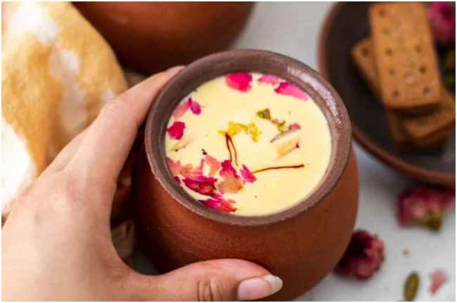 सफेद मिर्च 7 पिसी हुई, टी बैग 1, बादाम 1/4 कप दरदरे पिसे हुए, खसखस 2 बड़े चम्मच, सौंफ 1 छोटा चम्मच दरदरी कुटी हुई, इलायची 1/2 छोटा चम्मच पिसी हुई, चीनी 1 बड़ा चम्मच, केसर चुटकी भर