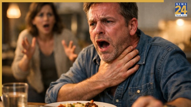 Gale Me Khana Fas Jaye Kya Kare: कई बार हम जल्दी-जल्दी खाना खाते हैं या खाते समय बात करते हैं, और अचानक खाना गले में फंस जाता है. उस समय घबराहट, सांस लेने में दिक्कत और बेचैनी बढ़ जाती है. यह स्थिति छोटी लग सकती है, लेकिन कई बार यह जानलेवा भी बन सकती है. खासकर जब खाना सांस की नली में फंस जाए, तो शरीर को तुरंत ऑक्सीजन मिलना कम हो सकता है, जिससे मौत तक हो सकती है. इसलिए ऐसी स्थिति में सही जानकारी और तुरंत सही कदम उठाना बेहद जरूरी होता है, ताकि बड़ी समस्या से बचा जा सके. इस स्टोरी में हम आपको बताएंगे कि अगर आप घर में अकेले हों और आपके साथ ऐसा कुछ हो जाए, तो आप कैसे अपनी जान बचा सकते हैं?