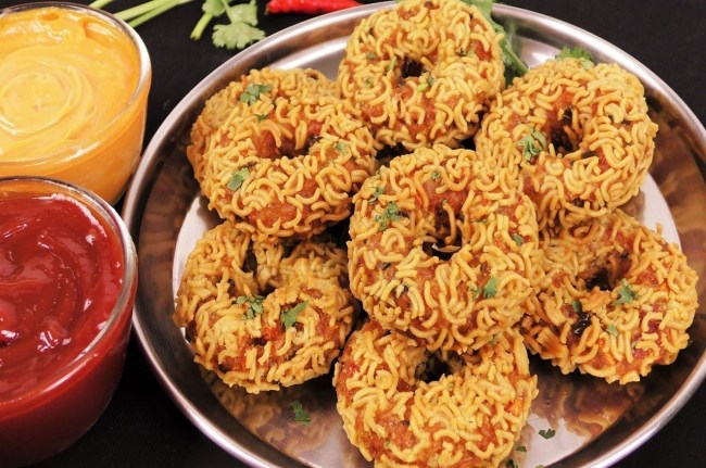 - फिर आप आधी बची हुई क्रश मैगी को डोनट्स और कटलेट पर कोट कर दें।