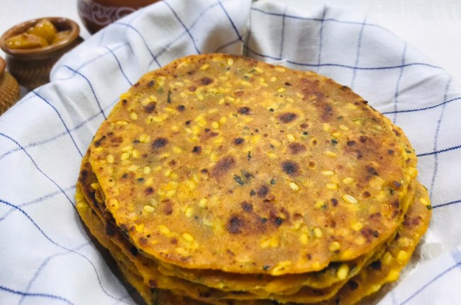 рд╕рдмрд╕реЗ рдкрд╣рд▓реЗ рдЖрдЯреЗ, рдмрдЪреА рд╣реБрдИ рджрд╛рд▓, рдзрдирд┐рдпрд╛ рдкрддреНрддреА рдПрдХ рдмрд░реНрддрди рдореЗрдВ рдЕрдЪреНрдЫреЗ рд╕реЗ рдорд┐рд▓рд╛ рд▓реЗрдВред рдЖрдЯрд╛ рдорд▓рддреЗ рд╣реБрдП рдкрд╛рдиреА-рд╕рдордп-рд╕рдордп рдкрд░ рдмреЗрд╣рдж рдХрдо рдбрд╛рд▓реЗрдВред рдЗрд╕рдХреЗ рдЕрд▓рд╛рд╡рд╛ рдмрд╛рд░реАрдХ рдкреНрдпрд╛рдЬ, рд╣рд░реА рд╕рдмреНрдЬреА, рдХрд╛рд▓рд╛ рдирдордХ рдпрд╛ рдорд┐рд░реНрдЪ рдЕрдЧрд░ рдЖрдк рдбрд╛рд▓рдирд╛ рдЪрд╛рд╣рддреЗ рд╣реИрдВ рддреЛ рдЖрдЯреЗ рдореЗрдВ рд╣реА рдорд┐рд▓рд╛ рд▓реЗрдВред рдЬрдм рдЖрдЯрд╛ рдкреВрд░реА рддрд░рд╣ рдЧреВрдВрде рдЬрд╛рдП рддреЛ рдЙрд╕реЗ 10 рд╕реЗ 15 рдорд┐рдирдЯ рдХреЗ рд▓рд┐рдП рдврдХрдХрд░ рд░рдЦ рджреЗрдВред рдЗрд╕рд╕реЗ рдЖрдЯрд╛ рдореБрд▓рд╛рдпрдо рд╣реЛ рдЬрд╛рдПрдЧрд╛ рдФрд░ рдкрд░рд╛рдард╛ рдмреЗрд╣рдж рд╕реНрд╡рд╛рдж рдмрдиреЗрдЧрд╛ред рдлрд┐рд░ рдЖрдЯреЗ рдХреА рдкрд╣рд▓реЗ рдЫреЛрдЯреА-рдЫреЛрдЯреА рд▓реЛрдИ рдмрдирд╛ рд▓реЗрдВред рдлрд┐рд░ рдЪрдХрд▓реЗ рдкрд░ рдЗрд╕реЗ рдмреЗрд▓рдиреЗ рдХреЗ рдмрд╛рдж рдиреЙрди рд╕реНрдЯрд┐рдХ рдпрд╛ рд╕рд╛рдорд╛рдиреНрдп рддрд╡реЗ рдкрд░ рд╕реЗрдХ рд▓реЗрдВред рдШреА рдпрд╛ рддреЗрд▓ рдЬрд░реВрд░рдд рдЕрдиреБрд╕рд╛рд░ рд▓рдЧрд╛рдПред рдЖрдк рдЗрд╕реЗ рдЕрдЪрд╛рд░, рджрд╣реА, рддрд░реА рд╡рд╛рд▓реА рдХрд┐рд╕реА рднреА рд╕рдмреНрдЬреА рдХреЗ рд╕рд╛рде рдЦрд╛ рд╕рдХрддреЗ рд╣реИрдВред