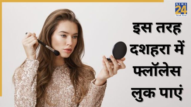 Dussehra Makeup Tips: आज के समय में मेकअप करना हर किसी को काफी पसंद होता है, लेकिन अक्सर मेकअप का सही बेस न सेट करने से मेकअप या तो खराब हो जाता है या फिर मेल्ट होने लगता है जिस कारण चेहरा खराब लगने लगता है. पसीने से मेल्ट होते मेकअप (Make Up) की दिक्कत से अगर आप भी परेशान होती हैं तो आप अकेली नहीं हैं. ज्यादातर लड़कियों की यही दिक्कत है. ऐसे में यहां जानिए किस तरह दशहरा मेले में जाने के लिए अपने मेकअप बेस को सेट करें जिससे पसीने से मेकअप ना बहे और खूबसूरत नजर आए.