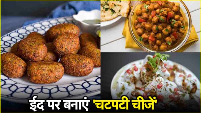 ईद पर स्टार्टर से लेकर लंच तक सब तैयार किया जाता है। इस दौरान बिरयानी के साथ कबाब भी बनाए जाते हैं। इस दिन सबका पेट इतना भर जाता है कि कुछ खाने की जगह नहीं बचती है। फिर भी कुछ चटपटा बनाने की सोच रहे हैं, तो कबाब बना सकते हैं। जो लोग वेजिटेरियन हैं, उनके लिए वेज कबाब और नॉन वेजिटेरियन लोगों के लिए चिकन या मटन के कबाब बना सकते हैं। नॉन वेज कबाब बनाने के लिए सबसे पहले मटन को उबाल लें। इसमें सभी गरम मसाले डाल दें और बहुत कम पानी के साथ कुकर में 4 से 5 सीटी लगा दें। इसके बाद इसको मिक्सर में बारीक पीस लें और सभी हरा धनिया, मिर्च काटकर इसमें मिला दें। छोटे-छोटे कबाब बनाएं और तेल में फ्राई कर लें। इसको हरी चटनी के साथ मेहमानों को सर्व करें।