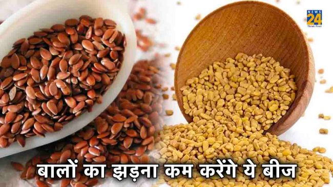 अलसी का बीज- अलसी के बीज कैल्शियम, पोटैशियम, ओमेगा-3 से भरपूर होते हैं। बालों के झड़ने से रोकने के लिए आप अलसी के बीजों को अपने डाइट में शामिल कर सकते हैं। इसके अलावा ये कोलेस्ट्रॉल,ब्लड शुगर को नियंत्रित करने में भी सहायक होते हैं।