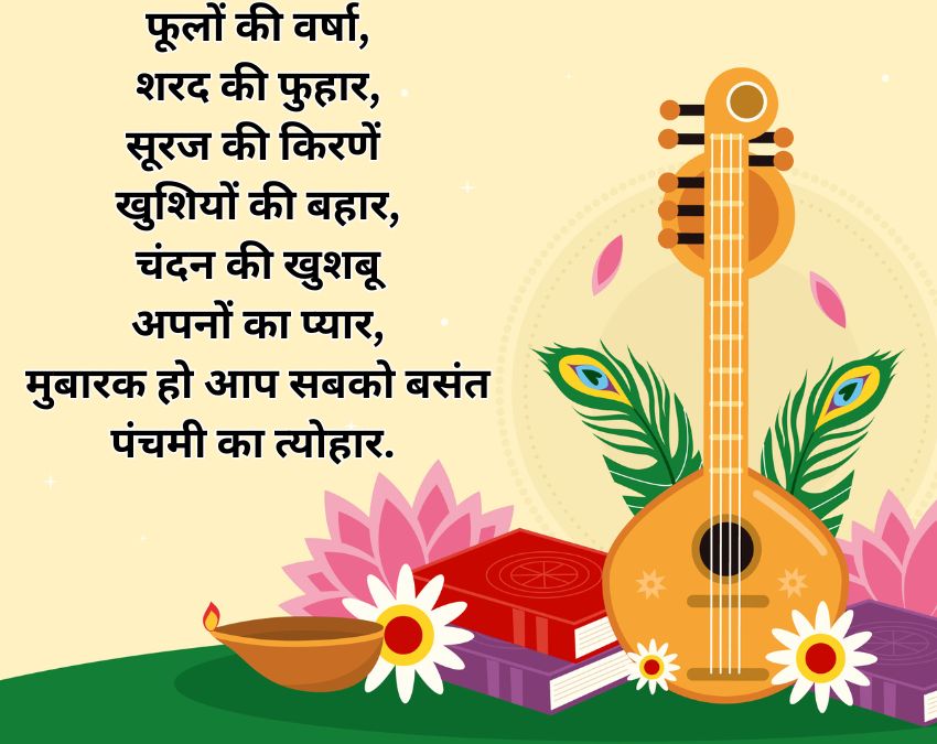 बसंती फूलों की खुशबू महके चारों ओर,मन में उमंगें और घर में प्यार हो भरपूर,वीणा की मधुर तान से जागे ज्ञान का उजियारा,मां सरस्वती का आशीष रहे सदा साथ हमारा.