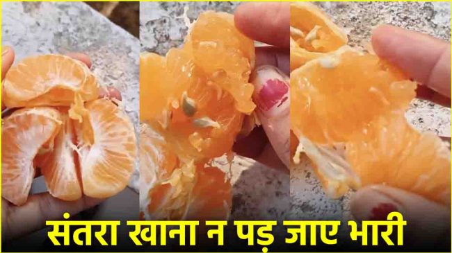 बता दें कि एक विडियो सामने आया जिसमें ये नजर आ रहा है कि संतरे के अंदर बीजों के साथ सफेद रंग के कीड़े पाए गए हैं। जिसे देखकर आप भी संतरे खाना छोड़ देंगे। अगर आपको संतरे खाना पसंद है, तो संतरे को छीलने के बाद उसे ध्यान से खाएं आप इसे चेक करने के लिए इसके बीजों हाथों से निकालकर ही खाएं। ऐसे में अगर आप संतरे को मुंह में डालने के बाद बीजों को निकालते हैं, तो ऐसा करना आपकी सेहत के लिए नुकसानदायक साबित हो सकता है। इससे आपको पेट से जुड़ी कई तरह की समस्या हो सकती है। कीड़े लगे हुए संतरे को खाने से आप लंबे समय के लिए बीमार पड़ सकते हैं।