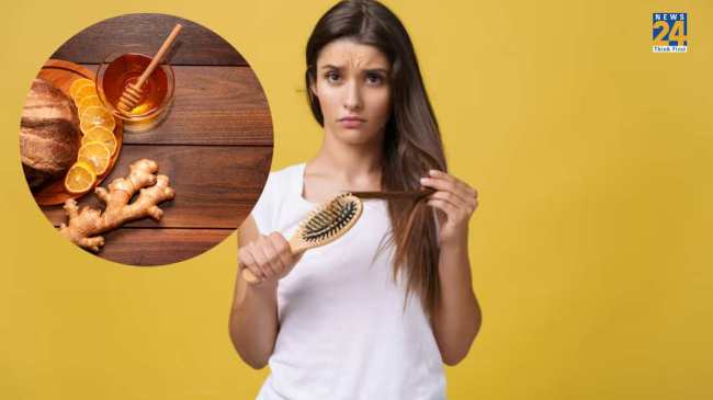अदरक के रस में शहद मिलाकर इसे बालों में लगाने से बाल मजबूत और झड़ने से बचे रहते हैं।