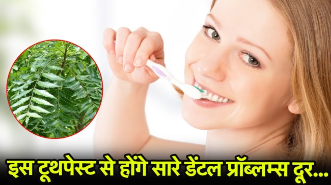 नेचुरल टूथपेस्ट बनाने के लिए आप सबसे पहले नीम की सूखी पत्तियां, भुनी हुई लौंग और फिटकरी को मिक्सी में बारीक पीस लें। फिर उसमें हल्दी, त्रिफला चूर्ण और सेंधा नमक मिलाएं। सभी चीजों को मिलाकर एक एयरटाइट डिब्बे में स्टोर करें।