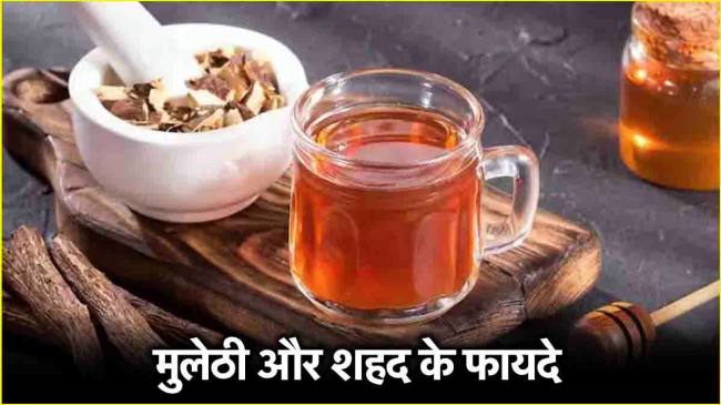 Honey And Mulethi benefits: सर्दी का मौसम आते ही हेल्थ को लेकर कई तरह की समस्या होने लगती है। इन समस्याओं को कम करने के लिए घरेलू उपाय कई बार बहुत कारगर साबित होते हैं। जिसमें से मुलेठी और शहद को रामबाण इलाज माना जाता है। शहद शरीर को कई बीमारियों से छुटकारा दिलाने में मदद करता है, तो वहीं मुलेठी एक आयुर्वेदिक दवाई में से एक है। मुलेठी में कई औषधीय गुण होते हैं जैसे कि एंटी-इंफ्लेमेटरी, एंटीऑक्सीडेंट और एंटीमाइक्रोबियल। साथ ही शहद में भी कई पोषक तत्व होते हैं जैसे कि विटामिन, मिनरल्स और एंटीऑक्सीडेंट पाए जाते हैं। ऐसे में अगर आप दोनों को मिलाकर इसका सेवन करते हैं, तो कई सारी समस्याओं से दूर रह सकते हैं।