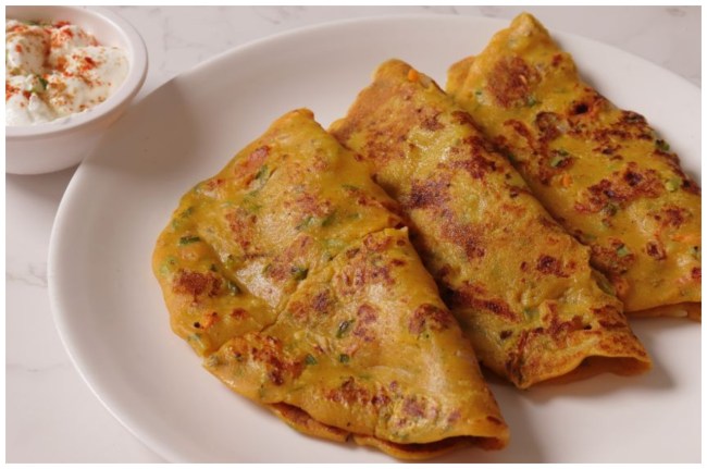 इसके बाद सभी सब्जियों को लेकर बारीक-बारीक पीस लें। आप चाहें तो इस बैटर में इन सब्जियों को मिक्स कर सकते हैं। इसके अलावा ऊपर से भी अलग से डालकर पका सकते हैं। दोनों ही प्रोसेस चीला तैयार किया जा सकता है।
