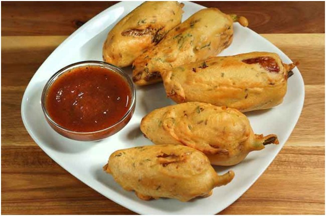 इसके बाद कटी हुई मिर्च में आलू की स्टफिंग भर लें और इसके बाद इनको बेसन के घल में लपेटकर तल लें। आपका मिर्ची बडा बनकर तैयार है, इसे आप टमैटो सॉस, चटनी या अपनी मनपसंद किसी भी सॉस के साथ परोस सकते हैं।