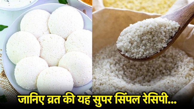 рд╡реНрд░рдд рд╡рд╛рд▓реА рдЗрдбрд▓реА рдмрдирд╛рдиреЗ рдХреЗ рд▓рд┐рдП рд╕рдмрд╕реЗ рдкрд╣рд▓реЗ рд╕рд╛рдордХ рдХреЗ рдЪрд╛рд╡рд▓ рдФрд░ рднрд┐рдЧреЛрдпрд╛ рд╣реБрдЖ рд╕рд╛рдмреВрджрд╛рдирд╛ рдПрдХ рд╕рд╛рде рдкреАрд╕ рд▓реЗрдВ рдпрд╛ рдЕрдЪреНрдЫреЗ рд╕реЗ рдорд┐рд▓рд╛ рд▓реЗрдВред рдЗрд╕рдХреЗ рдмрд╛рдж рдЗрд╕рдореЗрдВ рджрд╣реА рдФрд░ рдереЛрдбрд╝рд╛ рд╕рд╛ рдкрд╛рдиреА рдорд┐рд▓рд╛рдХрд░ рд╕реНрдореВрдж рдмреИрдЯрд░ рдмрдирд╛ рд▓реЗрдВред рдЕрдм рд╕реНрд╡рд╛рджрд╛рдиреБрд╕рд╛рд░ рд╕реЗрдВрдзрд╛ рдирдордХ рдбрд╛рд▓реЗрдВ рдФрд░ рдмреИрдЯрд░ рдХреЛ 10тАУ15 рдорд┐рдирдЯ рдХреЗ рд▓рд┐рдП рдврдХрдХрд░ рд░рдЦ рджреЗрдВред рдереЛрдбрд╝реА рджреЗрд░ рдмрд╛рдж рдЗрд╕рдореЗрдВ рдИрдиреЛ рдпрд╛ рдмреЗрдХрд┐рдВрдЧ рд╕реЛрдбрд╛ рдбрд╛рд▓реЗрдВ рдФрд░ рд╣рд▓реНрдХреЗ рд╣рд╛рде рд╕реЗ рдорд┐рд▓рд╛рдПрдВред рдорд┐рд▓рд╛рдиреЗ рдХреЗ рдмрд╛рдж рдЗрдбрд▓реА рдХреЗ рд╕рд╛рдВрдЪреЗ рдореЗрдВ рдереЛрдбрд╝рд╛ рдШреА рд▓рдЧрд╛рдХрд░ рдмреИрдЯрд░ рдбрд╛рд▓реЗрдВ рдФрд░ рд╕реНрдЯреАрдорд░ рдореЗрдВ 10тАУ12 рдорд┐рдирдЯ рддрдХ рд╕реНрдЯреАрдо рдХрд░реЗрдВ, рдЬрдм рддрдХ рдЗрдбрд▓реА рдлреВрд▓рдХрд░ рдкрдХ рди рдЬрд╛рдПред рдЗрдбрд▓реА рдкрдХрдиреЗ рдХреЗ рдмрд╛рдж рдЖрдкрдХреА рд╡реНрд░рдд рд╡рд╛рд▓реА рдЗрдбрд▓реА рддреИрдпрд╛рд░ рд╣реЛ рдЬрд╛рдПрдЧреА, рдЬрд┐рд╕реЗ рдЖрдк рдирд╛рд░рд┐рдпрд▓ рдХреА рдЪрдЯрдиреА рдпрд╛ рд╡реНрд░рдд рд╡рд╛рд▓реА рдореВрдВрдЧрдлрд▓реА рдХреА рдЪрдЯрдиреА рдХреЗ рд╕рд╛рде рдкрд░реЛрд╕ рд╕рдХрддреА рд╣реИрдВред рдЕрдЧрд░ рдЖрдк рдЗрдбрд▓реА рдореЗрдВ рддрдбрд╝рдХрд╛ рд▓рдЧрд╛рдирд╛ рдЪрд╛рд╣реЗ рддреЛ рдШреА рдореЗрдВ рдЬреАрд░рд╛, рдХрд░реА рдкрддреНрддрд╛ рдФрд░ рдереЛрдбрд╝реА рд╣рд░реА рдорд┐рд░реНрдЪ рдбрд╛рд▓рдХрд░ рдКрдкрд░ рд╕реЗ рдЗрдбрд▓реА рдкрд░ рдбрд╛рд▓ рд╕рдХрддреА рд╣реИрдВред рддрдбрд╝рдХреЗ рдХреЗ рд╕рд╛рде рдпрд╣ рдФрд░ рднреА рдЬреНрдпрд╛рджрд╛ рд╕реНрд╡рд╛рджрд┐рд╖реНрдЯ рд▓рдЧрддреА рд╣реИред рдЗрд╕рдХреЗ рд╕рд╛рде рд╣реА рдЖрдк рдЪрд╛рд╣реЗрдВ рддреЛ рдЗрд╕реЗ рдмрд┐рдирд╛ рд╡реНрд░рдд рдХреЗ рд░реЛрдЬрд╛рдирд╛ рд╕реНрдиреЗрдХреНрд╕ рдпрд╛ рдирд╛рд╢реНрддреЗ рдХреЗ рддреМрд░ рдкрд░ рднреА рдЦрд╛ рд╕рдХрддреЗ рд╣реИрдВред