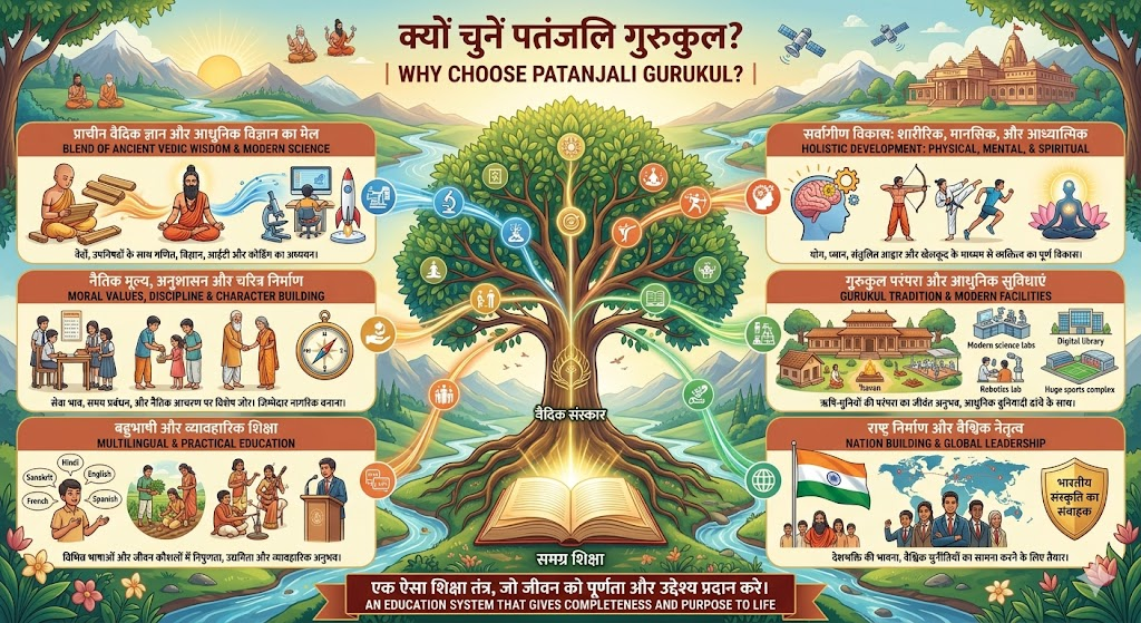 рдкрддрдВрдЬрд▓рд┐ рдЧреБрд░реБрдХреБрд▓ рдХреА рд╕рдмрд╕реЗ рдмрдбрд╝реА рдЦрд╛рд╕рд┐рдпрдд рд╣реИ рдХрд┐ рдпрд╣рд╛рдВ рдЖрдзреБрдирд┐рдХ рдФрд░ рдкрд╛рд░рдВрдкрд░рд┐рдХ рд╢рд┐рдХреНрд╖рд╛ рдХрд╛ рдмреЗрд╣рддрд░реАрди рдореЗрд▓ рджреЗрдЦрдиреЗ рдХреЛ рдорд┐рд▓рддрд╛ рд╣реИ. рдпрд╣ рдХрд╣рдирд╛ рдЧрд▓рдд рдирд╣реАрдВ рд╣реЛрдЧрд╛ рдХрд┐ рдкрддрдВрдЬрд▓рд┐ рдЧреБрд░реБрдХреБрд▓ рднрд╛рд░рддреАрдп рд╢рд┐рдХреНрд╖рд╛ рдмреЛрд░реНрдб рд╕реЗ рд╕рдВрдмрджреНрдз рдкрд╣рд▓рд╛ рдРрд╕рд╛ рд╡рд┐рджреНрдпрд╛рд▓рдп рд╣реИ, рдЬреЛ рдЖрдзреБрдирд┐рдХ рд╢рд┐рдХреНрд╖рд╛ рдХреЗ рд╡реИрдЬреНрдЮрд╛рдирд┐рдХ рджреГрд╖реНрдЯрд┐рдХреЛрдг рдХреЛ рдкреНрд░рд╛рдЪреАрди рд╡реИрджрд┐рдХ рдЬреНрдЮрд╛рди рдХреА рдЖрдзреНрдпрд╛рддреНрдорд┐рдХ рдЧрд╣рд░рд╛рдИ рдХреЗ рд╕рд╛рде рд╢реИрдХреНрд╖рд┐рдХ рдврд╛рдВрдЪрд╛ рд▓реЛрдЧреЛрдВ рдХреЛ рдкреНрд░рджрд╛рди рдХрд░ рд░рд╣рд╛ рд╣реИ.