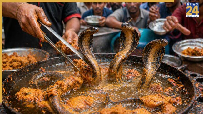 Cobra Snake Pakoda: पकौड़े की कई वैरायटी आपने खाई होगी जैसे- आलू, प्याज या गोभी आदि. नॉन वेज के शौकीन चिकन या मटन के पकौड़े बनाना पसंद करते हैं, लेकिन क्या आपको पता है कि एक ऐसा देश भी है जहां पर जिंदा कोबरा को तलकर पकौड़े बनाए जाते हैं. आप हैरान तो तब होंगे, जब आपको पता चलेगा कि इसे खाने के लिए लोग लंबी-लंबी लाइन लगाते हैं. इंडियन व्लॉगर आकाश चौधरी ने इंडोनेशिया के टूर के एक वीडियो में दिखाया कि कैसे लोग यहां पर कोबरा के पकौड़े बनाकर बेचते हैं.