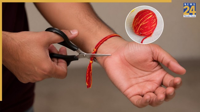 किसी भी शुभ दिन स्नान करने के बाद मंदिर घर में बैठकर अपने हाथ से आप कलावा उतार सकते हैं, जिसे तुरंत ही विसर्जित कर दें. यदि विसर्जन करने में समय है तो तब तक आप उसे मंदिर में रख सकते हैं. बता दें कि पुराना कलावा उतारने के बाद तुरंत नया कलावा बांध सकते हैं. (All Photo Credit- Social Media & Meta AI) डिस्क्लेमर: यहां दी गई जानकारी धार्मिक मान्यताओं पर आधारित है तथा केवल सूचना के लिए दी जा रही है. News24 इसकी पुष्टि नहीं करता है.
