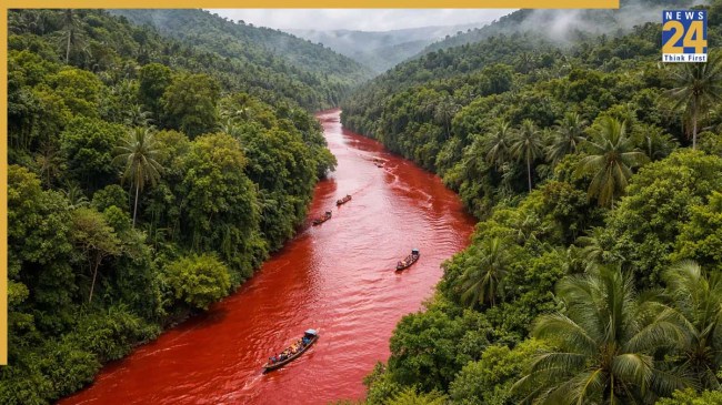 नदी का पानी खून नहीं बनता, बल्कि ये नेचुरल प्रोसेस का रिजल्ट है. भारी बारिश के दौरान नदी का रंग बदलना एक सामान्य भौगोलिक घटना है, हालांकि देखने में ये बेहद अलग लगता है.
