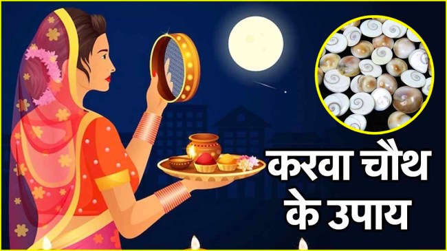 - करवा चौथ के दिन महिलाएं दो गोमती चक्र लें। गोमती चक्र के एक तरफ अपना नाम और दूसरी तरफ पिता का नाम लिखें। फिर एक लाल कपड़ा लें। उसके ऊपर दोनों गोमती चक्र और थोड़ी-सी पीली सरसों को रखें। कपड़े को अच्छे से बांध लें और उसे अलमारी के ऊपर छुपाके रख दें। धार्मिक मान्यता के अनुसार, पत्नी यदि करवा चौथ के दिन ये उपाय चुपचाप करती हैं, तो उनका रिश्ता पति संग मजबूत होता है।