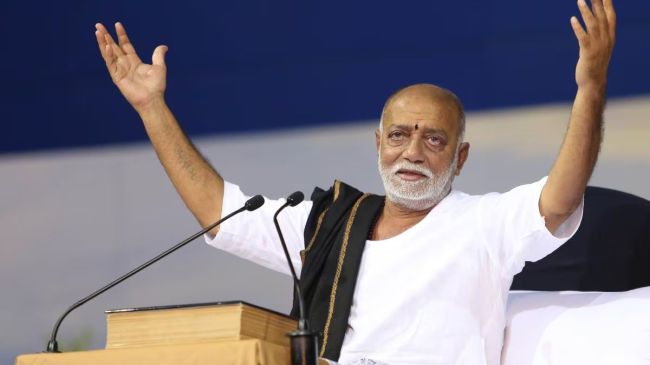 Morari Bapu Ramkatha controversy: प्रख्यात कथावाचक मोरारी बापू की श्रीराम कथा का आयोजन वाराणसी के सिगरा स्थित रुद्राक्ष कन्वेंशन सेंटर में 14 जून से 22 जून तक होना तय हुआ था। आयोजकों ने मोदी सरकार के ऑपरेशन सिंदूर से प्रेरित होकर इस कथा का नाम ‘मानस सिंदूर’ रखा था। मोरारी बापू की पत्नी नर्मदा बेन का 11 जून 2025 को निधन हो गया था। इसके बाद से मोरारी बापू स्वयं सूतक काल थे।