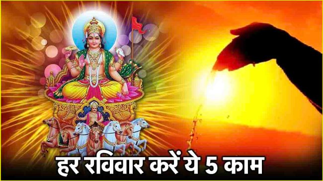 - रविवार की शाम घर के मेन गेट के दोनों ओर देसी घी का जलाना चाहिए। ऐसा करने से सूर्य देव के साथ ही माता लक्ष्मी की भी कृपा प्राप्त होती है और धन आगमन होने लगता है।