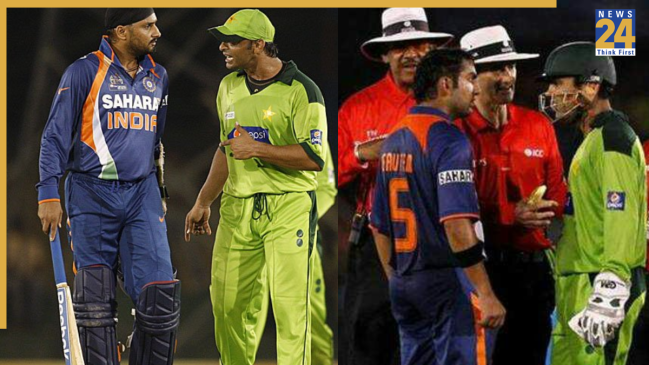 рдПрд╢рд┐рдпрд╛ рдХрдк 2010 рдореЗрдВ рднрд╛рд░рдд рдФрд░ рдкрд╛рдХрд┐рд╕реНрддрд╛рди рдХреЗ рдмреАрдЪ рдореБрдХрд╛рдмрд▓рд╛ рд╣реБрдЖ рдерд╛ред рдкрд╛рдХрд┐рд╕реНрддрд╛рди рдиреЗ рдЗрд╕ рдореИрдЪ рдореЗрдВ рдкрд╣рд▓реЗ рдмрд▓реНрд▓реЗрдмрд╛рдЬреА рдХрд░рддреЗ рд╣реБрдП 267 рд░рди рдмрдирд╛рдП рдереЗред рдЬрд╡рд╛рдм рдореЗрдВ рднрд╛рд░рдд 49рд╡реЗрдВ рдУрд╡рд░ рддрдХ рд╕рдВрдШрд░реНрд╖ рдХрд░рддреА рд░рд╣реАред рдЗрд╕рдХреЗ рдмрд╛рдж рдХреНрд░реАрдЬ рдкрд░ рдмрд▓реНрд▓реЗрдмрд╛рдЬреА рдХрд░ рд░рд╣реЗ рд╣рд░рднрдЬрди рд╕рд┐рдВрд╣ рдиреЗ рд╢реЛрдПрдм рдЕрдЦреНрддрд░ рдХреА рдЧреЗрдВрдж рдкрд░ рдЫрдХреНрдХрд╛ рдЬрдбрд╝рд╛ред рдЗрд╕рдХреЗ рдмрд╛рдж рдЕрдЦреНрддрд░ рднрдЬреНрдЬреА рдкрд░ рдЧрд░рдо рд╣реЛ рдЧрдПред рджреЛрдиреЛрдВ рдХреЗ рдмреАрдЪ рддреАрдЦреА рдмрд╣рд╕ рд╣реБрдИред рдорд╛рдорд▓рд╛ рдХрд╛рдлреА рдЖрдЧреЗ рдмрдврд╝ рдЧрдпрд╛ рдерд╛ред рдЗрд╕рдХреЗ рдмрд╛рдж рдЕрдВрдкрд╛рдпрд░ рдХреЛ рдЖрдХрд░ рдорд╛рдорд▓рд╛ рд╢рд╛рдВрдд рдХрд░рд╛рдирд╛ рдкрдбрд╝рд╛ред рд╣рд░рднрдЬрди рдиреЗ рд╡рд┐рдЬрдпреА рдЫрдХреНрдХрд╛ рд▓рдЧрд╛рдХрд░ рднрд╛рд░рдд рдХреЛ рдЬреАрдд рджрд┐рд▓рд╛рдИ рдереАред