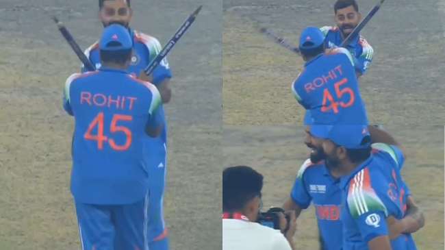 рд░реЛрд╣рд┐рдд рд╢рд░реНрдорд╛ рдиреЗ рдЗрд╕ рдореИрдЪ рдореЗрдВ 83 рдЧреЗрдВрджреЛрдВ рдореЗрдВ 76 рд░рдиреЛрдВ рдХреА рд╢рд╛рдирджрд╛рд░ рдкрд╛рд░реА рдЦреЗрд▓реА рдереАред рдЙрдиреНрд╣реЛрдВрдиреЗ рдореИрдЪ рдореЗрдВ рд╢рд╛рдирджрд╛рд░ рдмрд▓реНрд▓реЗрдмрд╛рдЬреА рдХреА рдФрд░ рднрд╛рд░рдд рдХреА рдЬреАрдд рдореЗрдВ рдЕрд╣рдо рдпреЛрдЧрджрд╛рди рдирд┐рднрд╛рдпрд╛ред рдореИрдЪ рдЬреАрддрдиреЗ рдХреЗ рдмрд╛рдж рд░реЛрд╣рд┐рдд рд╢рд░реНрдорд╛ рдФрд░ рд╡рд┐рд░рд╛рдЯ рдХреЛрд╣рд▓реА рдЬрд╢реНрди рдордирд╛рдиреЗ рдХреЗ рд▓рд┐рдП рдореИрджрд╛рди рдкрд░ рдкрд╣реБрдВрдЪреЗред рдЗрд╕ рджреМрд░рд╛рди рджреЛрдиреЛрдВ рдЦрд┐рд▓рд╛рдбрд╝реА рдиреЗ рд╕реНрдЯрдВрдк рдЙрдард╛рдХрд░ рдордЬрд╛рдХрд┐рдпрд╛ рдЕрдВрджрд╛рдЬ рдореЗрдВ рддрд▓рд╡рд╛рд░ рдмрд╛рдЬреА рдХреАред рдлрд┐рд░ рдмрд╛рдж рдореЗрдВ рджреЛрдиреЛрдВ рдЦрд┐рд▓рд╛рдбрд╝реА рдиреЗ рд╣рдВрд╕рддреЗ рд╣реБрдП рдПрдХ рджреВрд╕рд░реЗ рдХреЛ рдЧрд▓реЗ рд▓рдЧрд╛рд╛рдпрд╛ред рдЕрдм рдЗрд╕ рдкреВрд░реЗ рдорд╛рдорд▓реЗ рдХрд╛ рд╡реАрдбрд┐рдпреЛ рд╕реЛрд╢рд▓ рдореАрдбрд┐рдпрд╛ рдкрд░ рд╡рд╛рдпрд░рд▓ рд╣реЛ рдЧрдпрд╛ред рдлреИрдВрд╕ рдЗрд╕ рд╡реАрдбрд┐рдпреЛ рдХреЛ рдХрд╛рдлреА рдкрд╕рдВрдж рдХрд░ рд░рд╣реЗ рд╣реИрдВред