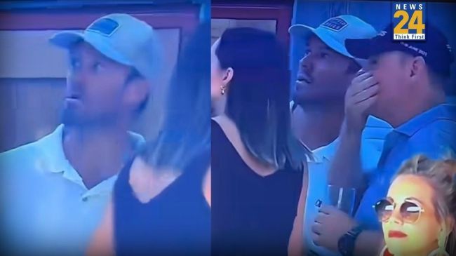 рдкреНрд░рд┐рдЯреЛрд░рд┐рдпрд╛ рдХреИрдкрд┐рдЯрд▓реНрд╕ рдХреА рдкрд╛рд░реА рдХреЗ рджреМрд░рд╛рди, 8рд╡реЗрдВ рдУрд╡рд░ рдХреЗ рдареАрдХ рдмрд╛рдж, рдЯреАрд╡реА рдХреИрдорд░рд╛ рд╕реНрдЯреИрдВрдбреНрд╕ рдХреА рдУрд░ рдЧрдпрд╛ рдФрд░ рдереЛрдбрд╝реА рджреЗрд░ рдХреЗ рд▓рд┐рдП рдПрдмреА рдбрд┐рд╡рд┐рд▓рд┐рдпрд░реНрд╕ рдХреЛ рдореИрдЪ рджреЗрдЦрддреЗ рд╣реБрдП рджрд┐рдЦрд╛рдпрд╛. рдбрд┐рд╡рд┐рд▓рд┐рдпрд░реНрд╕ рдХреЛ рдзреБрдЖрдВ рдЫреЛрдбрд╝рддреЗ рдФрд░ рдПрдХ рдФрд░ рдХрд╢ рд▓реЗрддреЗ рд╣реБрдП рджреЗрдЦрд╛ рдЧрдпрд╛, рдЗрд╕рдХреЗ рддреБрд░рдВрдд рдмрд╛рдж рдмреНрд░реЙрдбрдХрд╛рд╕реНрдЯ рдиреЗ рдЦреЗрд▓ рдХреА рд╡реАрдбрд┐рдпреЛ рд╕реНрд╡рд┐рдЪ рдХрд░ рд▓рд┐рдпрд╛.