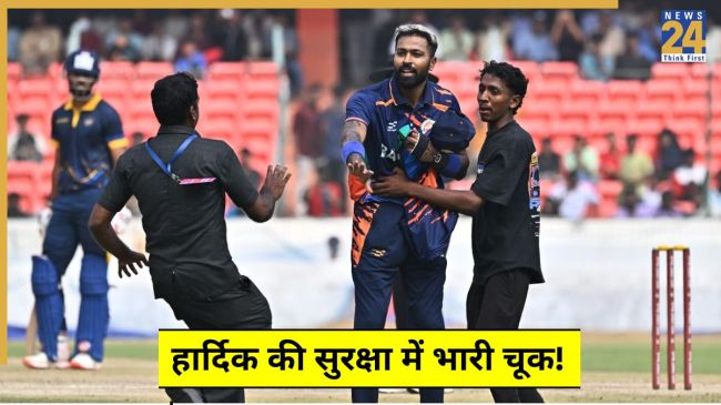 Hardik Pandya: рд╕рд╛рдЙрде рдЕрдлреНрд░реАрдХрд╛ рдХреЗ рдЦрд┐рд▓рд╛рдл рдкрд╣рд▓реЗ рд╡рдирдбреЗ рдореЗрдВ рдПрдХ рдлреИрди рд╕реБрд░рдХреНрд╖рд╛ рдореЗрдВ рд╕реЗрдВрдз рд▓рдЧрд╛рддреЗ рд╣реБрдП рд╡рд┐рд░рд╛рдЯ рдХреЛрд╣рд▓реА рд╕реЗ рдорд┐рд▓рдиреЗ рдмреАрдЪ рдореИрджрд╛рди рдЬрд╛ рдкрд╣реБрдВрдЪрд╛ рдерд╛. рдХреЛрд╣рд▓реА рдХреЗ рд╢рддрдХ рдкреВрд░рд╛ рдХрд░рддреЗ рд╣реА рдЗрд╕ рдлреИрди рдХреЛ рдЧреНрд░рд╛рдЙрдВрдб рдкрд░ рджреЗрдЦрд╛ рдЧрдпрд╛ рдерд╛ рдФрд░ рд╡рд╣ рд╡рд┐рд░рд╛рдЯ рдХреЗ рдкреИрд░ рдЫреВрддрд╛ рд╣реБрдЖ рджрд┐рдЦрд╛рдИ рджрд┐рдпрд╛ рдерд╛. рдХреЛрд╣рд▓реА рдХреЗ рдмрд╛рдж рдЕрдм рд╣рд╛рд░реНрджрд┐рдХ рдкрд╛рдВрдбреНрдпрд╛ рдХреА рд╕рд┐рдХреНрдпреЛрд░рд┐рдЯреА рдореЗрдВ рднреА рднрд╛рд░реА рдЪреВрдХ рджреЗрдЦрдиреЗ рдХреЛ рдорд┐рд▓реА рд╣реИ. рд╕реИрдпрдж рдореБрд╢реНрддрд╛рдХ рдЕрд▓реА рдЯреВрд░реНрдирд╛рдореЗрдВрдЯ рдореЗрдВ рдмрдбрд╝реМрджрд╛ рдФрд░ рдкрдВрдЬрд╛рдм рдХреЗ рдмреАрдЪ рдЦреЗрд▓реЗ рдЬрд╛ рд░рд╣реЗ рдореБрдХрд╛рдмрд▓реЗ рдореЗрдВ рд╣рд╛рд░реНрджрд┐рдХ рдкрд╛рдВрдбреНрдпрд╛ рд▓рдВрдмреЗ рд╕рдордп рдмрд╛рдж рдореИрджрд╛рди рдкрд░ рдЙрддрд░реЗ.