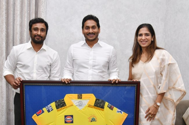 नई दिल्ली: चेन्नई सुपर किंग्स और टीम इंडिया के पूर्व बल्लेबाज अंबाती रायडू ने गुरुवार को आंध्र प्रदेश के मुख्यमंत्री वाईएस जगनमोहन रेड्डी से मुलाकात की। पूर्व क्रिकेटर ने सीएम से ताडेपल्ली कैंप कार्यालय में मीटिंग की। ये मीटिंग आधे घंटे से ज्यादा समय तक चली। इसके बाद उन्होंने आईपीएल ट्रॉफी और सीएसके की स्पेशल जर्सी प्रजेंट की।