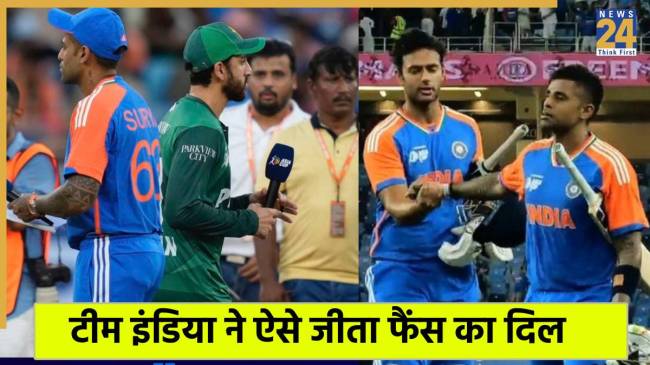 Asia Cup 2025 IND vs PAK: एशिया कप 2025 में टीम इंडिया ने जिस तरह से पाकिस्तान को हराया उससे फैंस बेहद खुश हैं. मैच के बाद कप्तान सूर्यकुमार यादव ने जो कहा और टीम इंडिया के नो हैंडशेक के फैसले को फैंस ने सही करार दिया है. पूरे सोशल मीडिया पर मेन इन ब्लू की जय जयकार हो रही है. पहलगाम आतंकी हमले के बाद दोनों टीमें मैदान पर उतरी थीं. तमाम विरोध और बयानबाजी के बाद यह मैच हुआ, लेकिन जिस तरह से टीम इंडिया ने मैच जीता और कप्तान सूर्यकुमार यादव ने यह जीत सेना को समर्पित कर दी.
