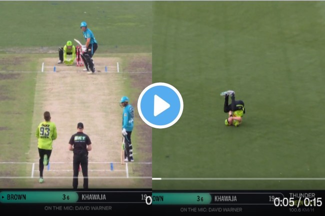 इस मैच में फील्डर Nathan McAndrew ने एक कमाल का कैच लपका। दरअसल, ब्रिसबेन हीट के बल्लेबाज ने लॉन्ग ऑन की दिशा में तूफानी शॉट खेला था, जिस पर फील्डर McAndrew चीते की रफ्तार से झपटे और अद्भुत कैच लपक लिया। वह कैच लेने के बाद मैदान पर गुलाटी मारते नजर आए। उधर बल्लेबाज Josh Brown 3 रन बनाकर आउट हो गए हैं।
