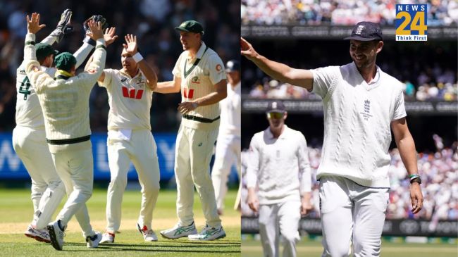 AUS vs ENG Boxing Day Test: рдмреЙрдХреНрд╕рд┐рдВрдЧ-рдбреЗ рдЯреЗрд╕реНрдЯ рдореИрдЪ рдХрд╛ рдкрд╣рд▓рд╛ рджрд┐рди рдкреВрд░реА рддрд░рд╣ рд╕реЗ рдЧреЗрдВрджрдмрд╛рдЬреЛрдВ рдХреЗ рдирд╛рдо рд░рд╣рд╛. рдЯреЙрд╕ рдЧрдВрд╡рд╛рдиреЗ рдХреЗ рдмрд╛рдж рдкрд╣рд▓реЗ рдмрд▓реНрд▓реЗрдмрд╛рдЬреА рдХрд░рдиреЗ рдЙрддрд░реА рдСрд╕реНрдЯреНрд░реЗрд▓рд┐рдпрд╛ рдХреА рдкреВрд░реА рдЯреАрдо рдкрд╣рд▓реА рдкрд╛рд░реА рдореЗрдВ рд╕рд┐рд░реНрдл 152 рд░рди рдмрдирд╛рдХрд░ рд╕рд┐рдордЯ рдЧрдИ. рдЧреЗрдВрджрдмрд╛рдЬреА рдореЗрдВ рдЬреЛрд╢ рдЯрдВрдЧ рдиреЗ рдХрд╣рд░ рдмрд░рдкрд╛рддреЗ рд╣реБрдП 5 рд╡рд┐рдХреЗрдЯ рдЕрдкрдиреА рдЭреЛрд▓реА рдореЗрдВ рдбрд╛рд▓реЗ. рд╡рд╣реАрдВ, рдЧрд╕ рдПрдЯрдХрд┐рдВрд╕рди рдиреЗ рднреА рджреЛ рд╡рд┐рдХреЗрдЯ рдЕрдкрдиреЗ рдирд╛рдо рдХрд┐рдП. рдХрдВрдЧрд╛рд░реВ рдЯреАрдо рд╕реЗ рдЬреНрдпрд╛рджрд╛ рд╣рд╛рд▓ рдмреЗрд╣рд╛рд▓ рдЗрдВрдЧреНрд▓рд┐рд╢ рдмрд▓реНрд▓реЗрдмрд╛рдЬреЛрдВ рдХрд╛ рд░рд╣рд╛. рдЗрдВрдЧреНрд▓реИрдВрдб рдХреА рдкреВрд░реА рдЯреАрдо рдлрд░реНрд╕реНрдЯ рдЗрдирд┐рдВрдЧ рдореЗрдВ рдорд╣рдЬ 110 рд░рди рдмрдирд╛рдХрд░ рдвреЗрд░ рд╣реЛ рдЧрдИ. рдорд╛рдЗрдХрд▓ рдиреЗрд╕рд░ рдиреЗ рдЪрд╛рд░ рддреЛ рд╕реНрдХреЙрдЯ рдмреЛрд▓реИрдВрдб рдиреЗ рддреАрди рд╡рд┐рдХреЗрдЯ рдЪрдЯрдХрд╛рдП.
