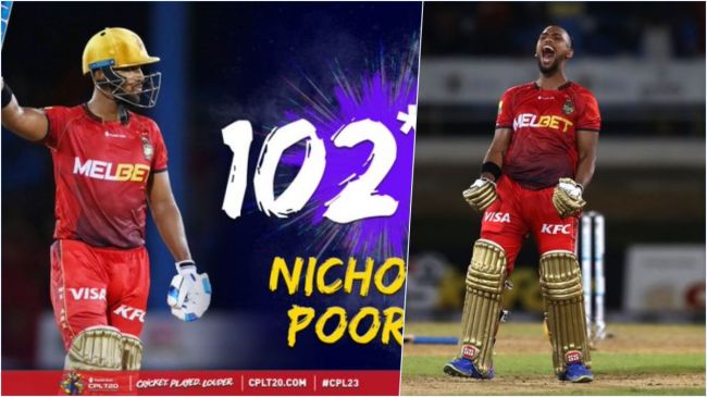 6 सितंबर यानी बुधवार को उन्होंने बारबाडोस रॉयल्स के खिलाफ 102 रनों की विस्फोटक पारी खेली और स्टेडियम में मौजूद दर्शकों का खूब मनोरंजन किया। पूरन ने 53 बॉल पर 102 रनों की नाबाद पारी खेली और अपनी टीम को 208 रनों तक पहुंचाया। पूरन की विस्फोटक पारी के दम पर उनकी टीम ने 42 रनों से शानदार जीत दर्ज की। पूरन ने अपना दम दिखाते हुए बेखौफ बल्लेबाजी की और मैदान के चारों तरफ छक्के उड़ाए।