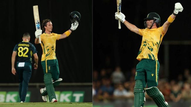 A fiery maiden T20I ton from Dewald Brevis ЁЯФе#AUSvSA ЁЯУЭ: https://t.co/68DKASFPQA pic.twitter.com/sPsZqQ7R3o