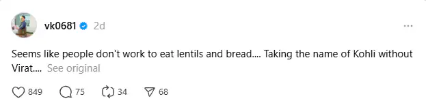 मांजरेकर के कमेंट्स ने व्यापक बहस और आलोचना को पैदा किया, खासकर 11 जनवरी 2026 को न्यूजीलैंड के खिलाफ पहले वनडे में कोहली के 93 रन बनाने के बाद. कोहली के भाई, विकास कोहली ने भी पूर्व भारतीय कप्तान के बचाव में कड़ी प्रतिक्रिया दी, उन्होंने पर लिखा, ‘लगता है कुछ लोगों की दाल-रोटी विराट कोहली का नाम लिए बिना नहीं चलती.’ फैंस ने इस पोस्ट को मांजरेकर की टिप्पणी का जवाब माना, हालांकि विकास ने किसी का नाम नहीं लिया था.