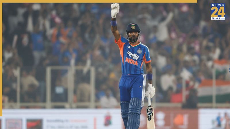 рд╣рд╛рд░реНрджрд┐рдХ рдиреЗ рдХреНрд░рд┐рдХреЗрдЯ рдХреЗ рд╕рдмрд╕реЗ рдЫреЛрдЯреЗ рдлреЙрд░реНрдореЗрдЯ рдореЗрдВ рднрд╛рд░рдд рдХреА рдУрд░ рд╕реЗ рджреВрд╕рд░рд╛ рд╕рдмрд╕реЗ рддреЗрдЬ рдЕрд░реНрдзрд╢рддрдХ рднреА рдЬрдорд╛рдпрд╛. рд╣рд╛рд░реНрджрд┐рдХ рдХреЛ рджреВрд╕рд░реЗ рдЫреЛрд░ рд╕реЗ рддрд┐рд▓рдХ рд╡рд░реНрдорд╛ рдХрд╛ рднреА рдЕрдЪреНрдЫрд╛ рд╕рд╛рде рдорд┐рд▓рд╛ рдФрд░ рджреЛрдиреЛрдВ рдиреЗ рдорд┐рд▓рдХрд░ рд╢рддрдХреАрдп рд╕рд╛рдЭреЗрджрд╛рд░реА рдЬрдорд╛рдИ.