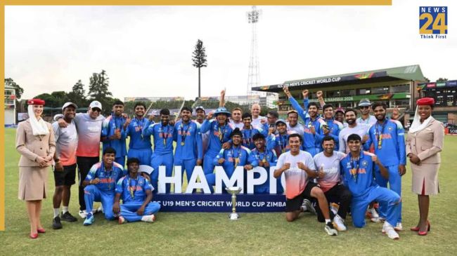 Team India U19 WC Champion: टीम इंडिया ने इंग्लैंड को फाइनल में हराते हुए छठी बार अंडर-19 वर्ल्ड कप 2026 के खिताब पर कब्जा जमाया. खिताबी मुकाबले में भारतीय टीम ने बेहतरीन प्रदर्शन करते हुए इंग्लैंड को 100 रनों से हराया. फाइनल में वैभव सूर्यवंशी का बल्ला जमकर गरजा और उन्होंने 80 गेंदों में 175 रनों की धमाकेदार पारी खेली.
