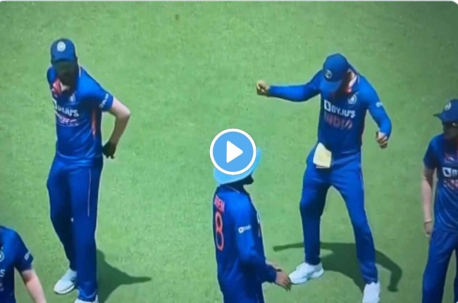 कोहली बाउंड्री रोप के करीब खड़े थे जहां पर लाउड स्पीकर पर लुंगी डांस नाम का गाना बज रहा था। इस पर वे अचानक थिरकने लगे। कोहली नीचे झुके और रुमाल को लुंगी जैसी ऊपर किया वहीं बाद में जमकर कमर मटकाई। विराट को ये अंदाज देखकर हर किसी को मजा आ गया।