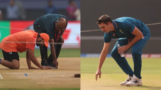 Captain Pat Cummins inspects the pitch ahead of the final 🔍#CWC23 #INDvAUS pic.twitter.com/fUNpHgJXtd