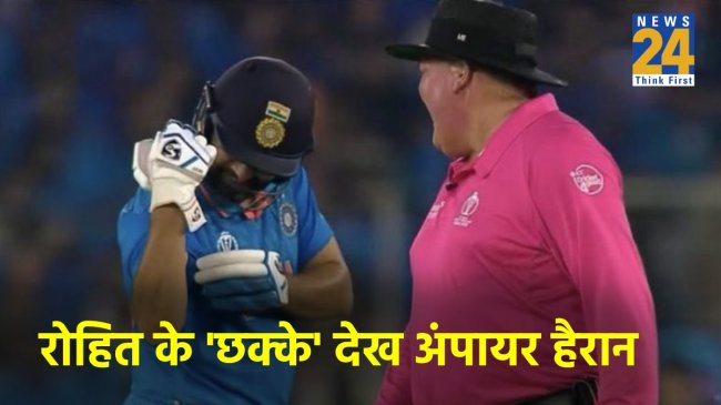 रोहित ने मैच में 86 रनों की शानदार पारी खेली। हिटमैन ने केवल 63 गेंदों पर विशाल स्कोर को बना लिया। उन्होंने पारी के दौरान छक्कों की बारिश कर दी। कप्तान ने एक दो या तीन नहीं बल्कि 6 छक्के जड़े। इसे देखकर एक समय मैदान पर खड़े अंपायर भी हैरान रह गए। मैच के दौरान एक छक्का जड़ने के बाद रोहित अंपायर को अपने डोले शोले दिखाते नजर आए।