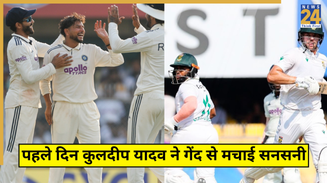 गुवाहाटी टेस्ट में जहां साउथ अफ्रीका ने संभलकर बल्लेबाजी की, वहीं कुलदीप यादव के आगे बल्लेबाजों ने घुटने टेके. उन्होंने पहले दिन 17 ओवर डाले और 3 विकेट अपने नाम किए. यादव ने रिकेल्टन, स्टब्स और मुल्डर का अहम विकेट झटका. मोहम्मद सिराज, जसप्रीत बुमराह और रवींद्र जडेजा ने भी एक-एक विकेट अपने नाम किया. दूसरे दिन भारतीय गेंदबाज जल्द से जल्द साउथ अफ्रीका को आउट करना चाहेंगे.