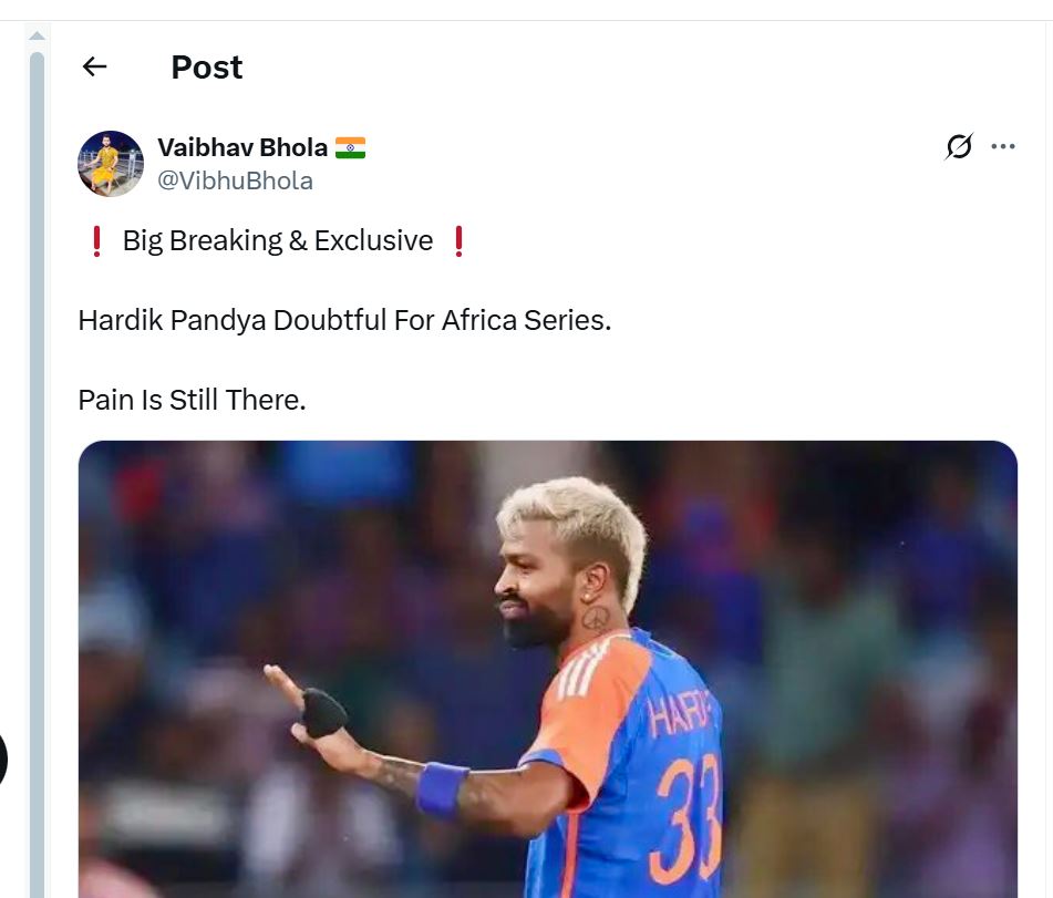 IND vs SA: рдЯреАрдо рдЗрдВрдбрд┐рдпрд╛ рдореМрдЬреВрджрд╛ рд╕рдордп рдореЗрдВ рджрдХреНрд╖рд┐рдг рдЕрдлреНрд░реАрдХрд╛ рдХреЗ рдЦрд┐рд▓рд╛рдл рдЯреЗрд╕реНрдЯ рд╕реАрд░реАрдЬ рдЦреЗрд▓ рд░рд╣реА рд╣реИ. рдЗрд╕ рдмреАрдЪ рднрд╛рд░рдд рдХреЗ рд▓рд┐рдП рдПрдХ рд╕рд╛рде рдХрдИ рдмреБрд░реА рдЦрдмрд░ рдЖ рд░рд╣реА рд╣реИ. рдХрдкреНрддрд╛рди рд╢реБрднрдорди рдЧрд┐рд▓ рдХреА рдЗрдВрдЬрд░реА рдиреЗ рдкрд╣рд▓реЗ рд╣реА рдлреИрдВрд╕ рдФрд░ рдореИрдиреЗрдЬрдореЗрдВрдЯ рдХреЛ рдкрд░реЗрд╢рд╛рди рдХрд░ рджрд┐рдпрд╛ рд╣реИ. рдЕрдм рд╣рд╛рд░реНрджрд┐рдХ рдкрд╛рдВрдбреНрдпрд╛ рдХреА рдЗрдВрдЬрд░реА рдХреЛ рд▓реЗрдХрд░ рднреА рдбрд░рд╛рдиреЗ рд╡рд╛рд▓рд╛ рдЕрдкрдбреЗрдЯ рдЖрдпрд╛ рд╣реИ. ┬ардПрд╢рд┐рдпрд╛ рдХрдк 2025 рдХреЗ рджреМрд░рд╛рди рдкрд╛рдВрдбреНрдпрд╛ рдХреЛ рдЗрдВрдЬрд░реА рд╣реБрдИ рдереА. рдЙрд╕рдХреЗ рдмрд╛рдж рд╕реЗ рд╡реЛ рдЯреАрдо рдЗрдВрдбрд┐рдпрд╛ рдореЗрдВ рд╡рд╛рдкрд╕реА рдирд╣реАрдВ рдХрд░ рдкрд╛рдП рд╣реИрдВ. рджрдХреНрд╖рд┐рдг рдЕрдлреНрд░реАрдХрд╛ рдХреЗ рдЦрд┐рд▓рд╛рдл рд╡рдирдбреЗ рдФрд░ рдЯреА20 рд╕реАрд░реАрдЬ рд╕реЗ рднреА рдЙрди рдкрд░ рдмрд╛рд╣рд░ рд╣реЛрдиреЗ рдХрд╛ рдЦрддрд░рд╛ рдордВрдбрд░рд╛ рд░рд╣рд╛ рд╣реИ.┬а