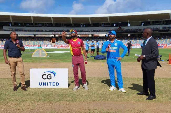 IND vs WI: भारत और वेस्टइंडीज के बीच तीन वनडे मैचों की सीरीज का पहला मुकाबला आज बारबाडोस के केंसिंग्टन ओवल में खेला जाएगा। जहां मेहमान टीम इंडिया ने टॉस जीतकर मेजबान वेस्ट इंडीज को पहले बल्लेबाजी के लिए बुलाया है। बता दें कि इस मुकाबले में तेज गेंदबाज मुकेश कुमार टीम इंडिया के लिए डेब्यू कर रहे हैं।