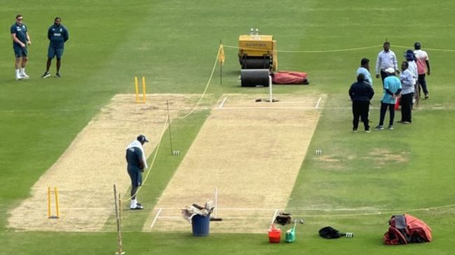 Pitch for the #IndvEng Hyderabad Test before it was put under covers. Not sure that’s a five day Test, but let’s see what happens. #IndvsEng pic.twitter.com/0clr16W8IC