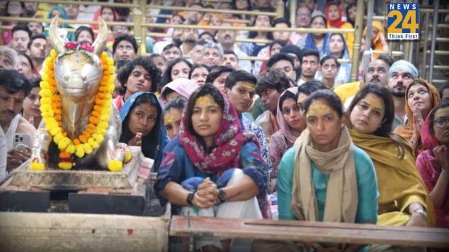 श्रीलंका के खिलाफ धमाकेदार प्रदर्शन करने के बाद भारतीय महिला क्रिकेट टीम महाकाल का आशीर्वाद लेने पहुंची. स्मृति मंधाना, शेफाली वर्मा, श्रेयंका पाटिल, रेणुका सिंह, राधा यादव, स्नेह राणा समेत इंडियन प्लेयर्स ने महाकाल की पूजा-अर्चना की. सभी खिलाड़ियों ने भस्म आरती में भी हिस्सा लिया. वीडियो में कुछ प्लेयर्स चुन्नी पहनी हुई भी नजर आ रही हैं.