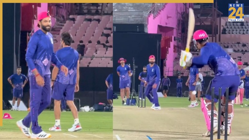 रवींद्र जडेजा को इस बार के सीजन से पहले राजस्थान रॉयल्स के स्क्वॉड में ट्रेड डील के जरिए शामिल किया गया है. इस बार जडेजा RR की जर्सी में खेलते हुए नजर आएंगे. टूर्नामेंट की शुरुआत से पहले रवींद्र जडेजा वैभव सूर्यवंशी के साथ नेट्स में प्रैक्टिस करते हुए नजर आए. वैभव के सामने जडेजा गेंदबाजी कर रहे थे जिसका वीडियो सोशल मीडिया पर तेजी से वायरल हो रहा है. इसमें वैभव ने कमाल की बल्लेबाजी करते हुए जडेजा की गेंदों पर बाउंड्री पार करने में कोई कोताही नहीं बरती. उन्होंने जडेजा की हर गेंद को बाउंड्री के पार पहुंचाया. दोनों के बीच का ये वीडियो सोशल मीडिया पर तेजी से वायरल हो रहा है.