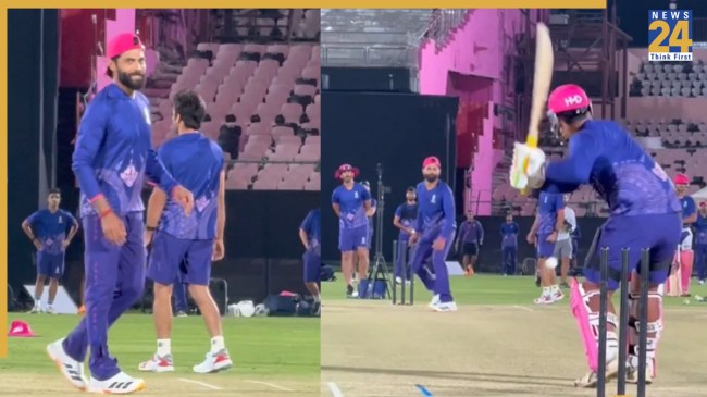 रवींद्र जडेजा को इस बार के सीजन से पहले राजस्थान रॉयल्स के स्क्वॉड में ट्रेड डील के जरिए शामिल किया गया है. इस बार जडेजा RR की जर्सी में खेलते हुए नजर आएंगे. टूर्नामेंट की शुरुआत से पहले रवींद्र जडेजा वैभव सूर्यवंशी के साथ नेट्स में प्रैक्टिस करते हुए नजर आए. वैभव के सामने जडेजा गेंदबाजी कर रहे थे जिसका वीडियो सोशल मीडिया पर तेजी से वायरल हो रहा है. इसमें वैभव ने कमाल की बल्लेबाजी करते हुए जडेजा की गेंदों पर बाउंड्री पार करने में कोई कोताही नहीं बरती. उन्होंने जडेजा की हर गेंद को बाउंड्री के पार पहुंचाया. दोनों के बीच का ये वीडियो सोशल मीडिया पर तेजी से वायरल हो रहा है.