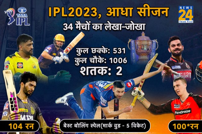 IPL season 16 completed Half journey: आईपीएल 2023 का पहला हॉफ 25 अप्रैल को खत्म हो गया है। 25 अप्रैल तक कुल 35 मैच खेले गए। पहले हॉफ के बाद 4 बार की चैंपिनन टीम चेन्नई सुपर किंग्स प्वाइंट टेबल में टॉप पर है। इस टीम ने 7 में से 5 मैच जीतकर 10 अंक हासिल किए हैं। पहले हॉफ में कुछ खिलाड़ियों ने अपने प्रदर्शन से सभी को चौंका दिया तो कुछ बड़े नाम फेल भी रहे।