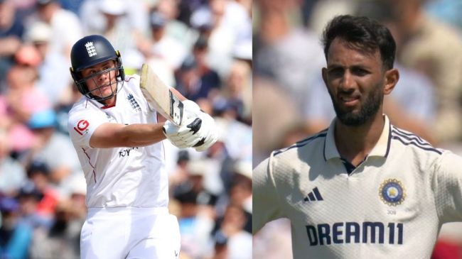 Jamie Smith vs Prasidh Krishna: рднрд╛рд░рдд рдФрд░ рдЗрдВрдЧреНрд▓реИрдВрдб рдХреЗ рдмреАрдЪ рд╕реАрд░реАрдЬ рдХрд╛ рджреВрд╕рд░рд╛ рдЯреЗрд╕реНрдЯ рдореИрдЪ рдПрдЬрдмреЗрд╕реНрдЯрди рдореЗрдВ рдЦреЗрд▓рд╛ рдЬрд╛ рд░рд╣рд╛ рд╣реИред рдЯреЗрд╕реНрдЯ рдХреЗ рддреАрд╕рд░реЗ рджрд┐рди рд╢реБрд░реБрдЖрддреА рдУрд╡рд░реЛрдВ рдореЗрдВ рднрд╛рд░рддреАрдп рдЧреЗрдВрджрдмрд╛рдЬреЛрдВ рдХрд╛ рдЬрд▓рд╡рд╛ рд░рд╣рд╛ред рд╕рд┐рд░рд╛рдЬ рдиреЗ рдЬреЛ рд░реВрдЯ рдФрд░ рдмреЗрди рд╕реНрдЯреЛрдХреНрд╕ рдХреЛ рд▓рдЧрд╛рддрд╛рд░ рджреЛ рдЧреЗрдВрджреЛрдВ рдореЗрдВ рдкрд╡реЗрд▓рд┐рдпрди рдХреА рд░рд╛рд╣ рджрд┐рдЦрд╛рдИред рд╣рд╛рд▓рд╛рдВрдХрд┐, рджрдмрд╛рд╡ рднрд░реА рдкрд░рд┐рд╕реНрдерд┐рддрд┐ рдореЗрдВ рдЗрдВрдЧреНрд▓рд┐рд╢ рд╡рд┐рдХреЗрдЯрдХреАрдкрд░ рдмрд▓реНрд▓реЗрдмрд╛рдЬ рдЬреЗрдореА рд╕реНрдорд┐рде рдЯреЗрд╕реНрдЯ рдореЗрдВ рдЯреА-20 рд╡рд╛рд▓реЗ рдЕрдВрджрд╛рдЬ рдореЗрдВ рдмреИрдЯрд┐рдВрдЧ рдХрд░рддреЗ рд╣реБрдП рджрд┐рдЦрд╛рдИ рджрд┐рдПред рд╕реНрдорд┐рде рдиреЗ рдкреНрд░рд╕рд┐рджреНрдз рдХреГрд╖реНрдгрд╛ рдХреЗ рдУрд╡рд░ рдореЗрдВ рдЪреМрдХреЗ-рдЫрдХреНрдХреЛрдВ рдХреА рдмрд░рд╕рд╛рдд рдХрд░рддреЗ рд╣реБрдП 23 рд░рди рдХреВрдЯ рдбрд╛рд▓реЗред